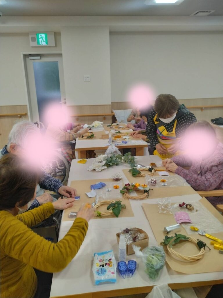 有料老人ホーム 竹すずめ様よりレクリエーションのご依頼を頂き、クリスマスリース作りを行いました🎄🌟